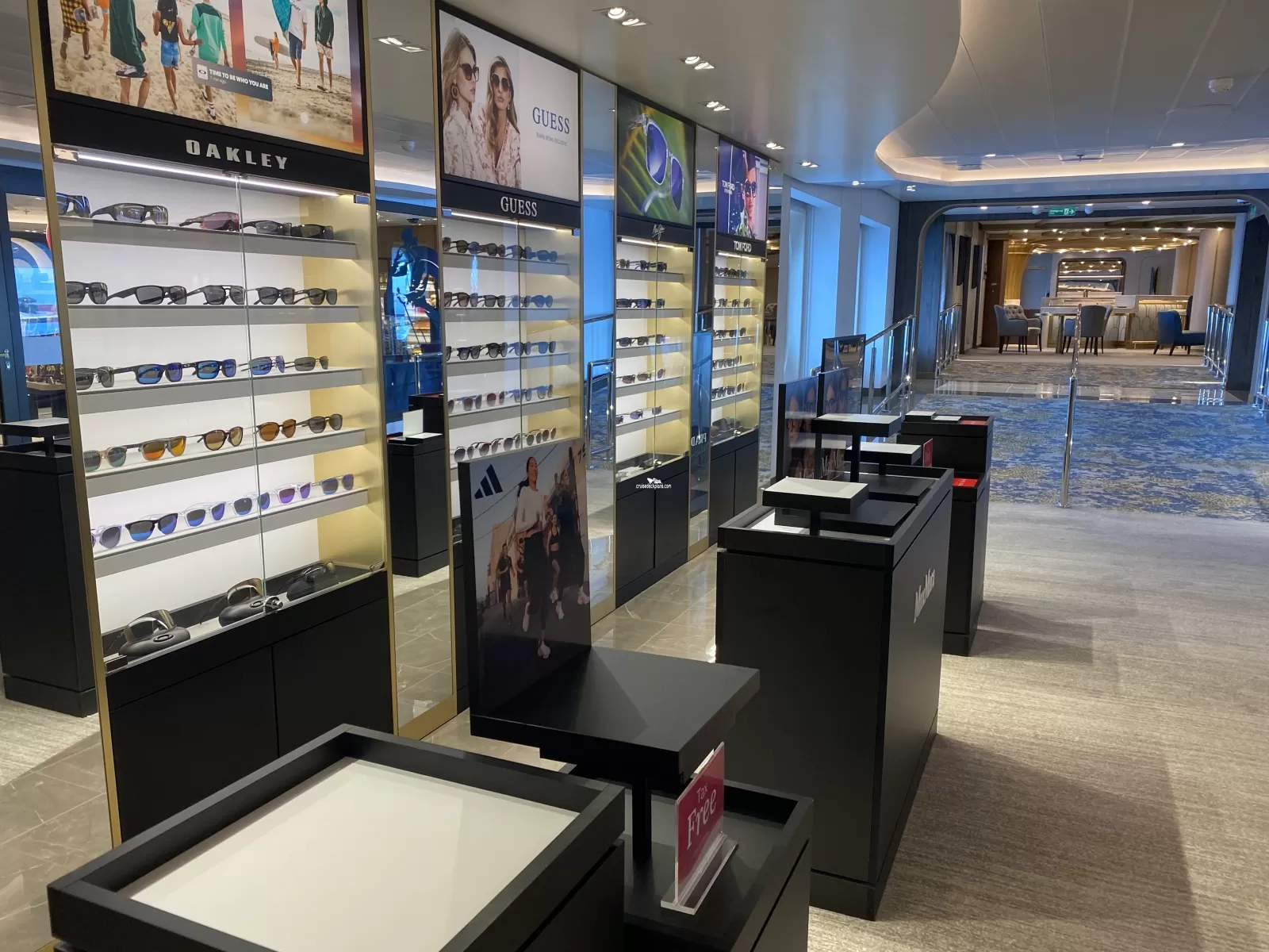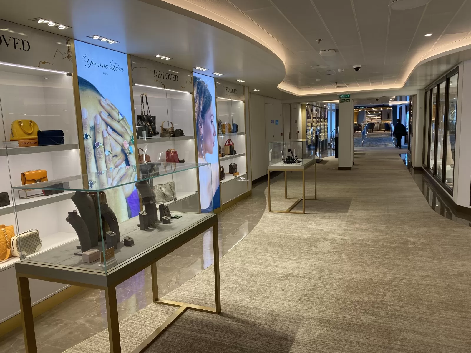 The opening on the Sun Princess at the start of the year bought forward a new era for the retail setup on Princess Cruises, as the first new ship opening managed by Harding+ since the tender win in 2021. It is fair to say that historically Princess ships retail offering was very much a 'cookie cutter' setup with a traditional, well established setup. But for Sun Princess retail offering, there is a real change in approach and this has been created with 2 distinct experience areas. On Deck 7 are the fashion accessories, logo, sunglasses and duty free boutiques. On Deck 8 are the beauty, fine watches and fine jewellery stores. The immersive nature of the 2 guest flow spaces on both decks going towards the main restaurants at the aft of the ship from the atrium / theatre at the front means that on both decks the shops are really well located, captivating and visible. Not only this, the way of capturing attention is pretty unique in our industry with an open plan fine watches space on deck 8 and fully accessible fashion and sunglasses spaces on deck 7. This really helps to show a transition from the traditional cruise ship set-apart retailing into something much more intuitive for guests. Strong marketing activation, clear brand installation and easy to shop spaces make this an excellent retail offering - well done team!