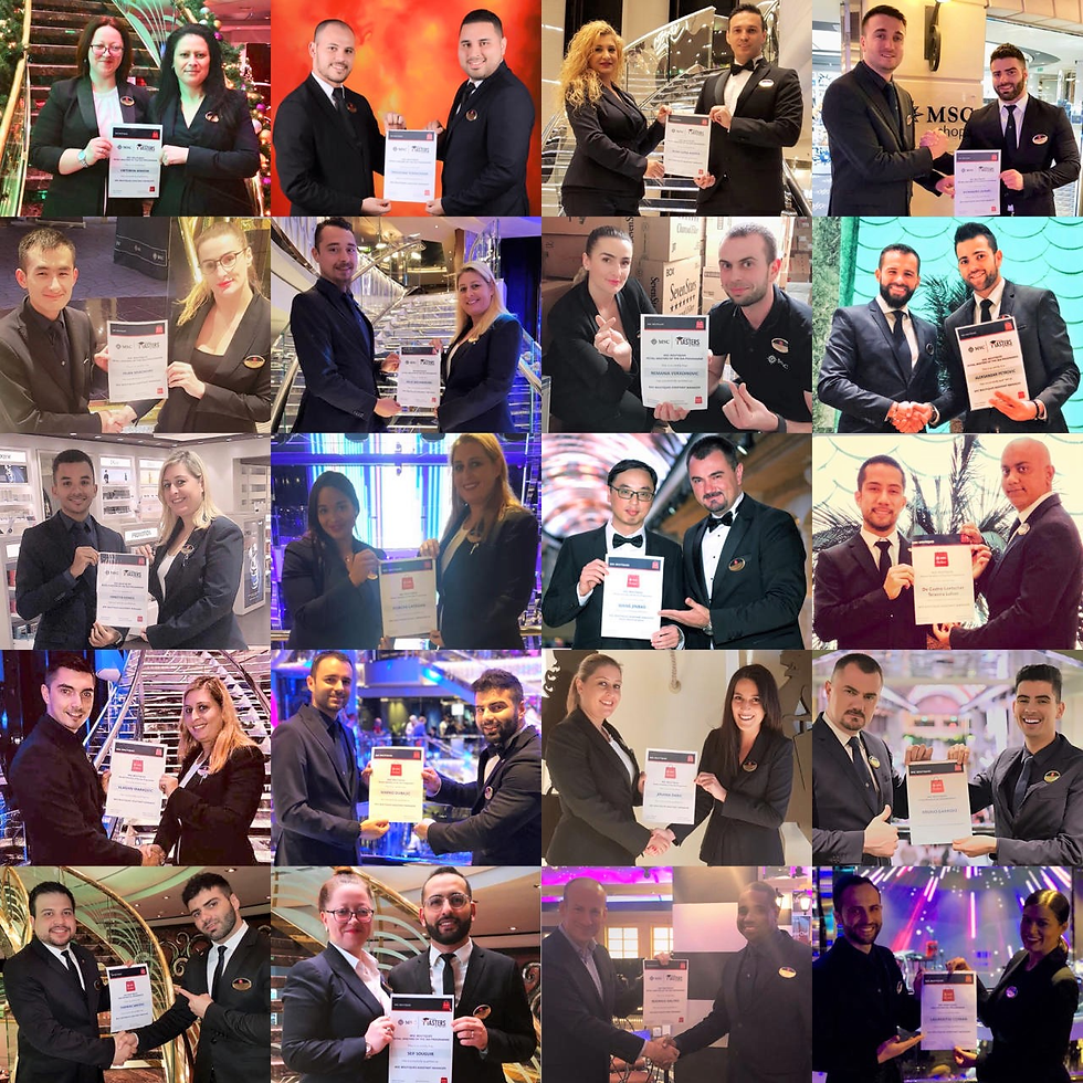 My name is Adrian Pittaway, I have been working as senior leader in the cruise retail industry for over a decade, and I have helped many amazing shoppies become successful shop managers. Over hundreds of ships visits, weekly phone calls and developing strategies I have understood first hand what works and what doesn't (some of those who were in my team shown below). If you want to learn more, please check my LinkedIn credentials here!