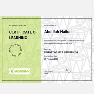 I’ve officially completed Building Your Brand in Cruise and earned my Cruise Retail Diploma! So proud of this achievement and grateful for the growth. This is just the beginning ready to shine onboard and bring my best every single day!